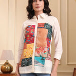 White Pure Cotton Patchwork Shirt Style Top With Lining