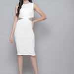 White Rib Side Cut-Out Bodycon Dress, in Rib fabric, Unlined, Knee Length, Slim Fit, No Closure, Straight Hemline and features Side Cut Out Detail