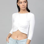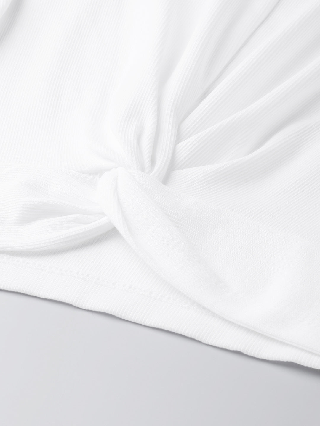 White Rib Twisted Knot Crop Top, in Cotton Rib fabric, Unlined, Crop Length, Slim Fit, No Closure, Straight Hemline and features Twist Knot Detail At Front