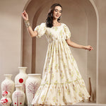 Green Floral Printed Rayon Tiered Dress (Pre-Order)