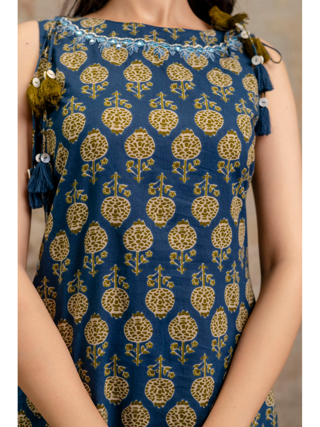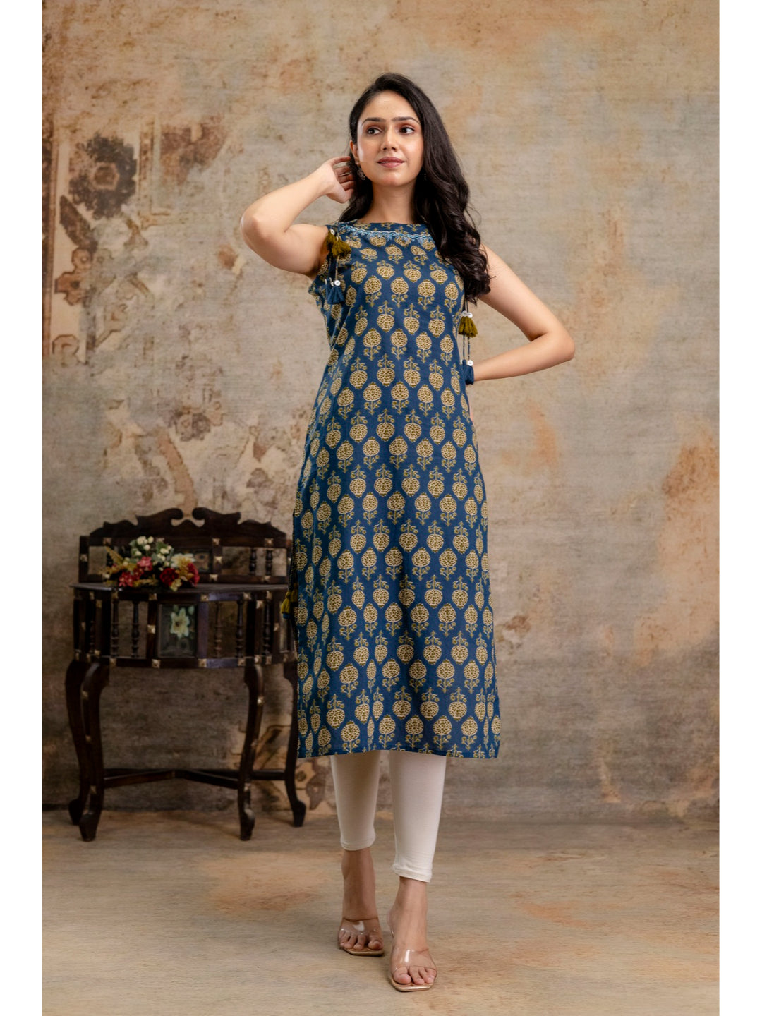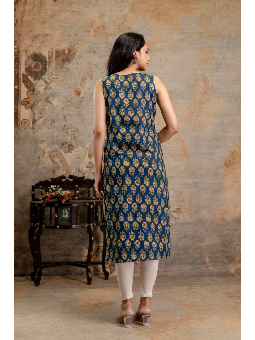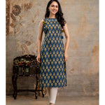 Blue Printed Cotton Straight Kurta (Pre-Order)