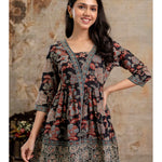 Black Floral Printed Cotton Peplum Top (Pre-Order)