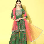 Printed & Embroidered Polyester Kurta Sharara Dupatta set