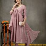 Solid Crepe Naira cut Kurta Pant Dupatta Set