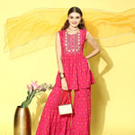 Printed & Embroidered Rayon Kurta Sharara Dupatta Set (Pre-Order)