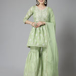 Printed & Embroidered Chanderi Cotton Kurta Sharara Dupatta Set (Pre-Order)