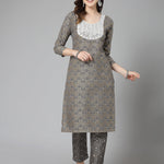 Printed & Embroidered Cotton Blend Straight Kurta Pant Set (Pre-Order)