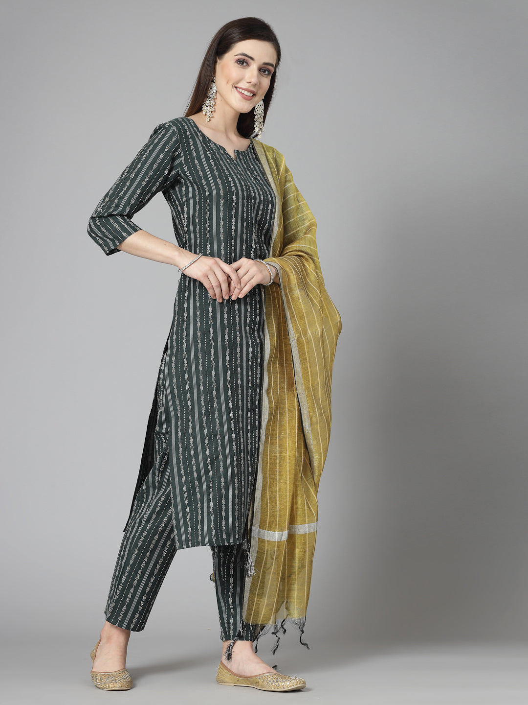 Woven Design Cotton Blend Straight Kurta Pant Dupatta Set (Pre-Order)