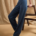 Airforce Blue Front Darted Strechable Pants, in Canton Knit fabric, Unlined, Full Length, Regular Fit, Button Closure, Straight Hemline and features Dart Detail At Front