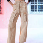 Women Beige Box Pocket Cargo Jeans