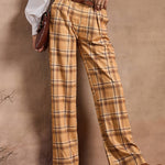 Beige Check High Rise Wide Leg Pants, in Canton fabric, Unlined, Full Length , Comfort Fit, Zipper closure, Straight Hemline and features Pleate Detail At Waist