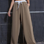 Beige Contrast Paperback Waist Pants, in Canton Knit fabric, Drawstring At Waistband , , Knitted, Straight, Fabric: Canton Knit Hemline and features Drawstring At Waistband