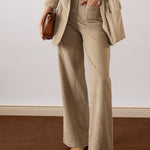 Women Beige Corduroy Front Patch Pocket Wide Leg Pants