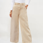 Women Beige Denim Flared Pants
