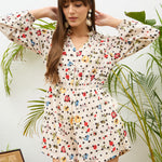 Women Beige Ditsy Floral Balloon Sleeves Playsuit