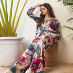 Women Beige Floral Oversize Shirt With Box Pocket Pants