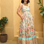 Women Beige Floral Strappy Tie-up Maxi Dress
