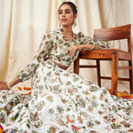 Women Beige Floral Wrap Top With Anarkali Skirt