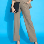 Beige Front Darted Pants, in Canton Knit fabric, Unlined, Full Length, Regular Fit, Button Closure, Straight Hemline and features Roll Up Detail On Sleeves
