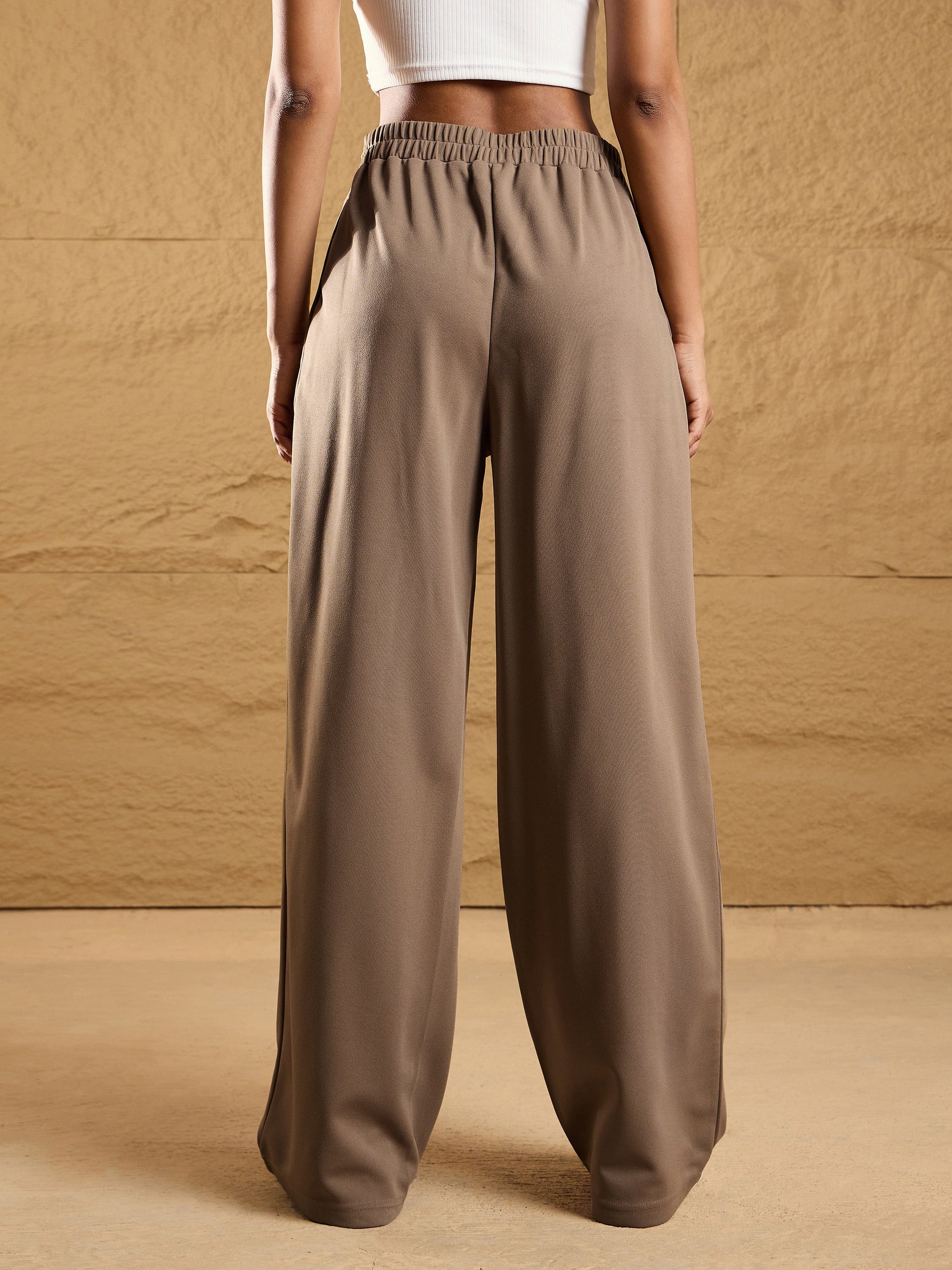 Women Beige Front Pleated Comfort Fit Korean Pants