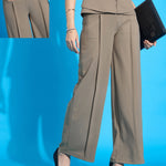 Beige Front Pleated Straight Fit Trousers, in Canton Knit fabric, Unlined, Full Length, Comfort Fit, Button Closure, Straight Hemline and features Roll Up Detail On Sleeves