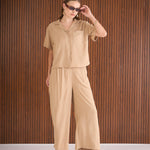 Beige Notch Collar Top With Straight Pants, in TL Polyester fabric, Unlined, Regular Length, Regular Fit, Button Closure, Straight Hemline and features Patch Pocket At Front / Bone Pocket Detail At Back