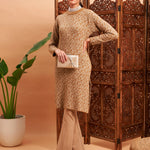 Beige & Off White Hair Wool Straight Kurta, in Nylon fabric, Unlined, Knee Length, Straight Fit, No Closure, Straight Hemline and features Slit Detail At Both Side