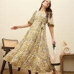 Beige Paisley Belted Midi Dress, in Summercool fabric, Polyknit Lining, Below Knee, Fit & Flare, Button Closure, Flared Hemline and features Placket At Front