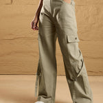 Women Beige Pocket Loop Detail Cargo Pants
