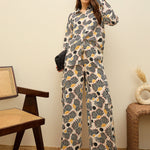 Women Beige Printed Oversize Shirt With Box Pocket Pants