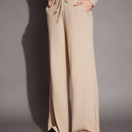 Beige Rib Drawstring Pants, in Rib fabric, Unlined, Regular Length, Comfort Fit, Drawstring Closure, Straight Hemline and features Drawstring Closure