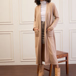 Beige Rib Longline Shrug, in Flat Back Winter Rib fabric, Unlined, Below Knee, Comfort Fit, No Closure, Straight Hemline and features Patch Pocket Detail At Front