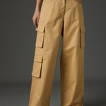 Women Beige Twill Box Pocket Straight Cargo Pants