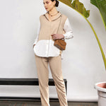 Women Beige & White Colo Block Shirt With Darted Pants