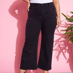 Women Black Acid Wash Denim Bell Bottom Jeans
