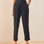 Black Back Flap Pocket Tapered Pants, in Canton Knit fabric, Flap Pockets At Back, , Knitted, Straight, Fabric: Canton Knit Hemline and features Flap Pockets At Back