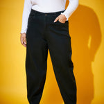 Black Balloon Fit Jeans, in Denim fabric, Unlined, Ankle Length, Comfort Fit, Button Closure, Straight Hemline and features Slit On Knee