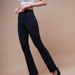 Black Bell Bottom Pants, in Roma fabric, Unlined, Full Length, Slim Fit, Slip On, Straight Hemline and features Bell Bottom Pants
