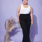 Black Bell Bottom Trousers, in Karera Crepe fabric, Unlined, Full Length, Slim Fit, Button Closure, Straight Hemline and features Flared Bottom