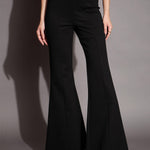Black Bootcut Flared High-Rise Trousers, in Roma fabric, Unlined, Full Length, Bell Bottom, Slip On, Straight Hemline and features Seam Detail at Front