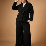Women Black Collar Neck Top With Straight Pants