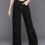 Women Black Contrast Stitch Detail Straight Jeans