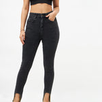 Black Denim Diamante Hem Relax Jeans , in Denim fabric, Unlined, Full Length, Slim Fit, Button Closure, Straight Hemline and features Elastic Detail At Back Waist