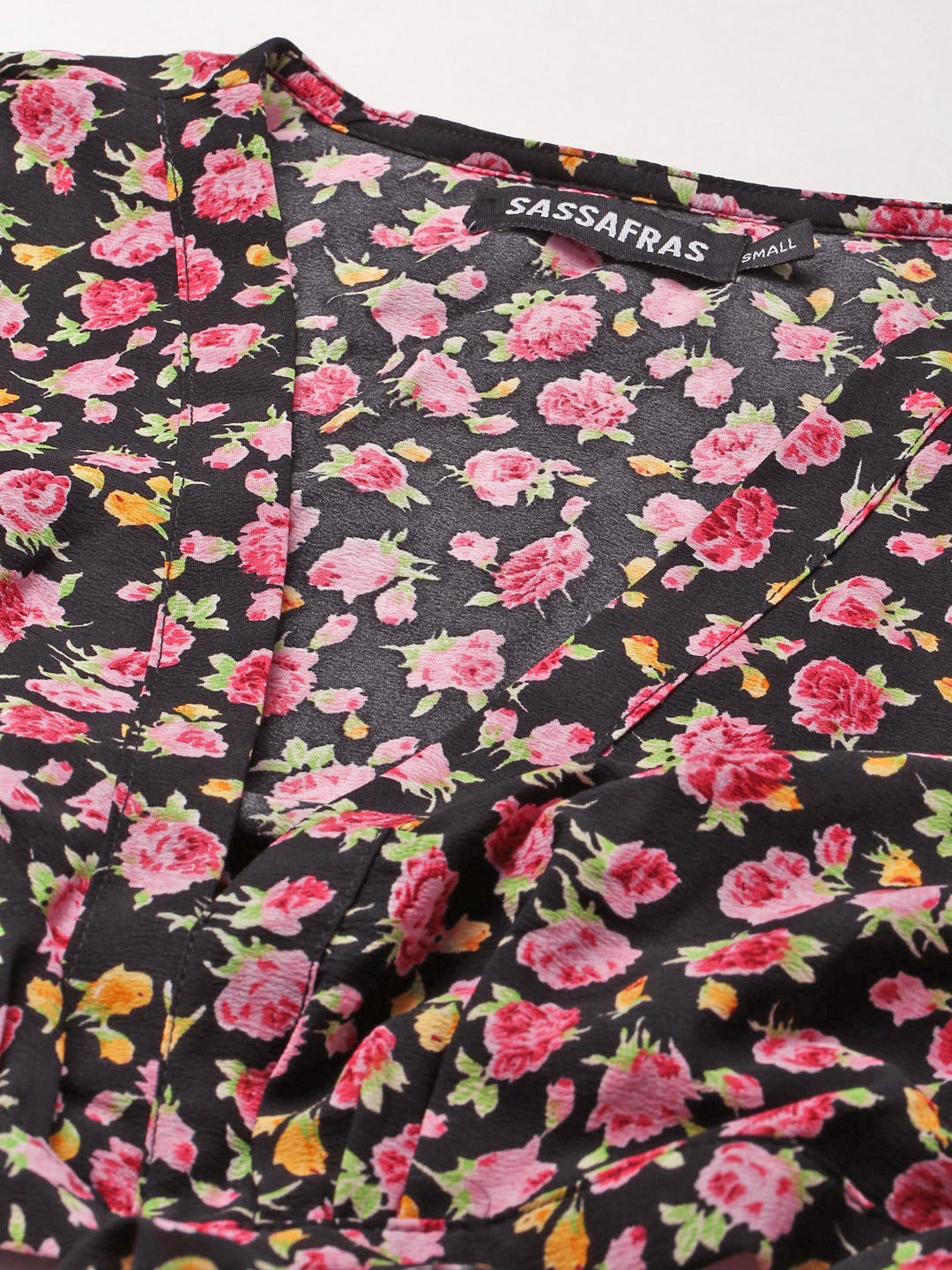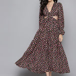 Women Black Ditsy Floral Waist Cut-Out Maxi Dress