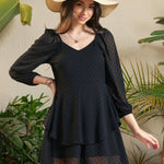 Women Black Dobby Sweetheart Neck Layered Hem Dress