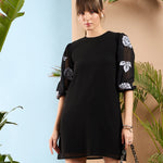 Women Black Embroidered Puff Sleeves Dress