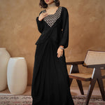 Women Black Embroidered Square Neck Top With Drape Skirt