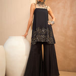 Women Black Embroidered Strappy Kurta With Palazzos
