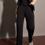 Black Fleece Track Pants, in Fleece fabric, Unlined, Full Length, Comfort Fit, Slip On, Straight Hemline and features Elastic At Waist