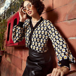 Women Black Floral Front Open Wool Cardigan